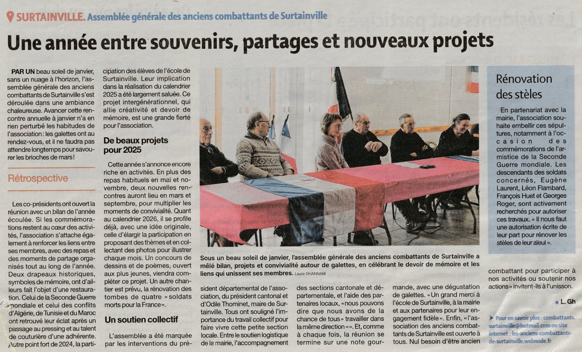 Dimanche 30 de mars les anciens combattants de Surtainville ont réalisé leur traditionnelle dégustation de brioches mais cette année, pour la 1re fois, l'après-midi a été un moment de partage autour d'une grande tombola, plus de 40 lots étaient...